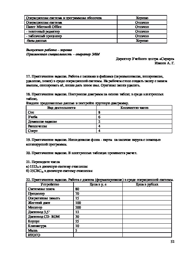 компьютерной и организационной техники, о программном обеспечении, об основных