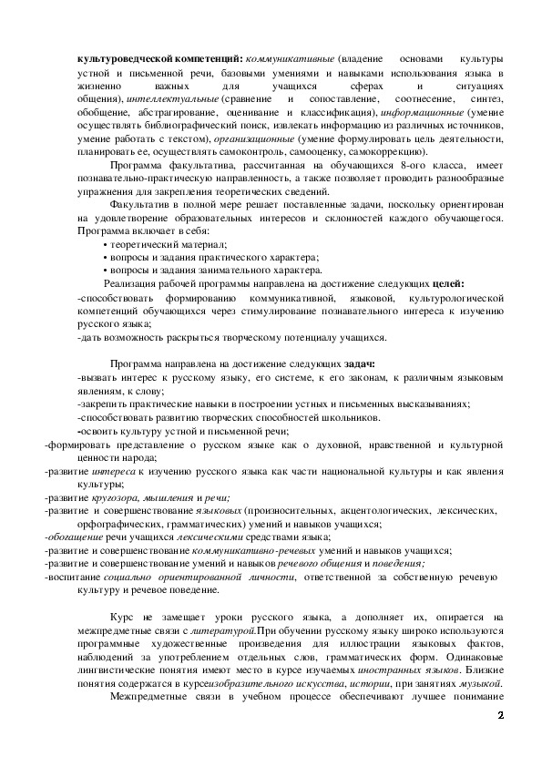 непосредственно связан с программой по русскому языку для 59 классов. Он расширяет и