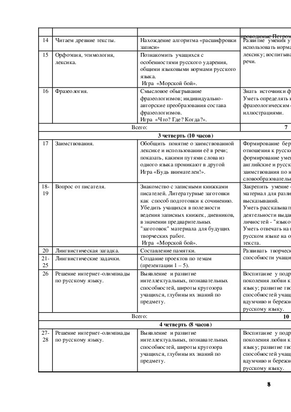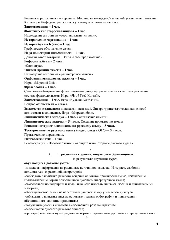 «Синтаксис», «Культура речи». «Фонетика». Большое внимание уделяется практическим