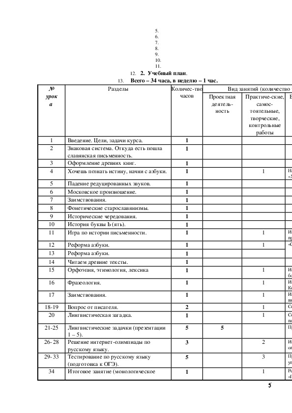На факультативный курс «Родной язык, тебя я берегу!» отводится 1 час в