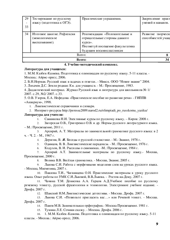 • Сборника Санникова Н.И. Элективные курсы по русскому языку. Киров. – 2008 г.