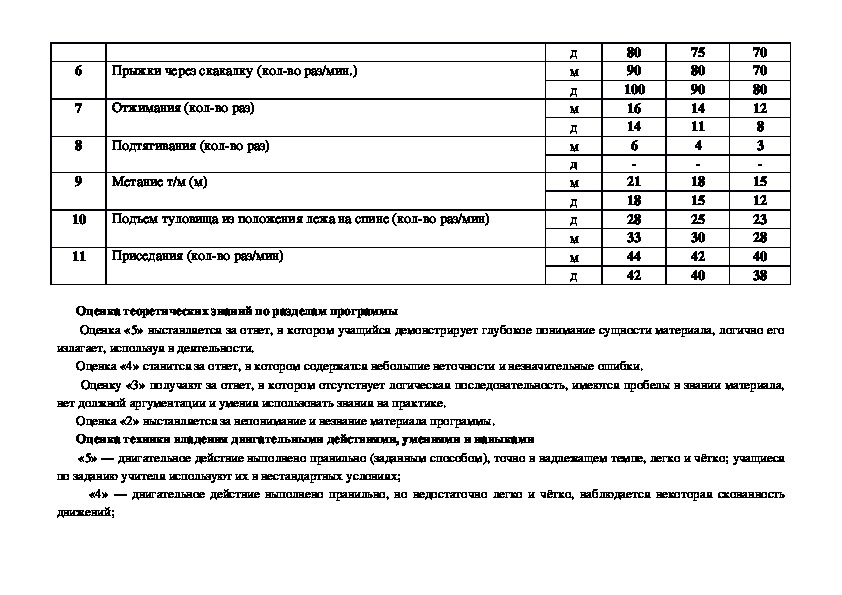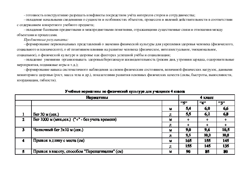 Учебные нормативы по физической культуре для учащихся 4 класса