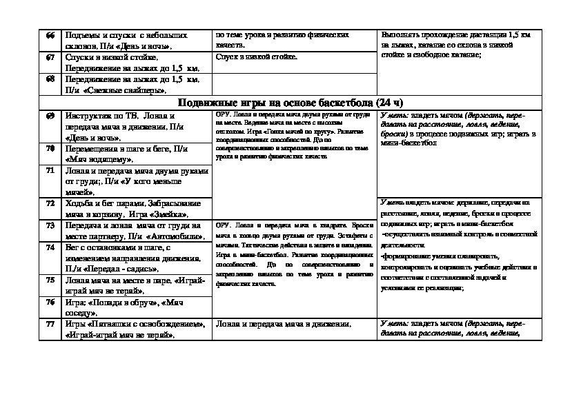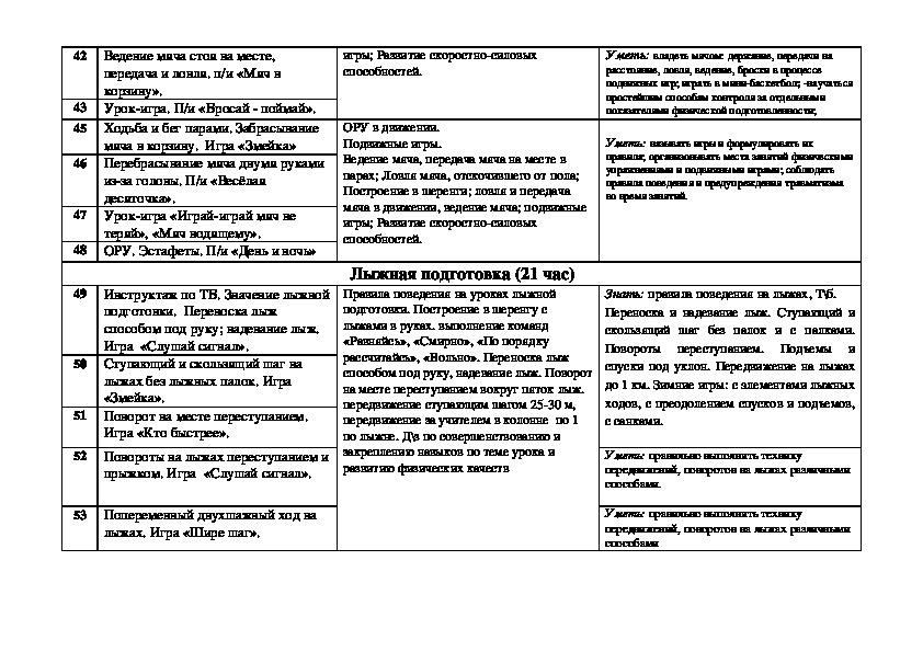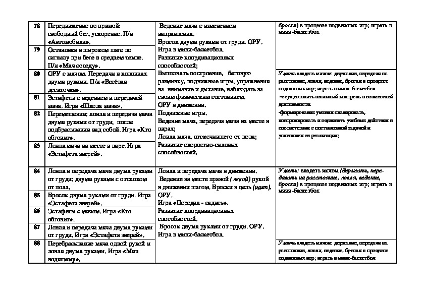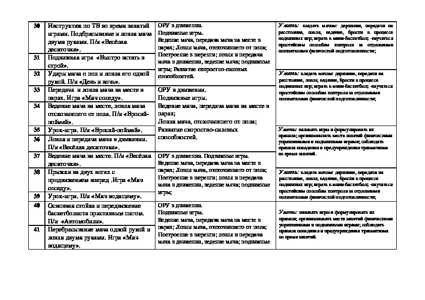 подвижных игр; играть в минибаскетбол89 Ведение мяча стоя на месте,