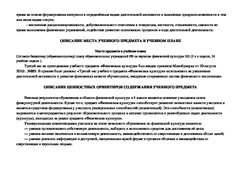 физкультурной деятельности. Кроме того, предмет «Физическая культура» способствует развитию личностных качеств учащихся и