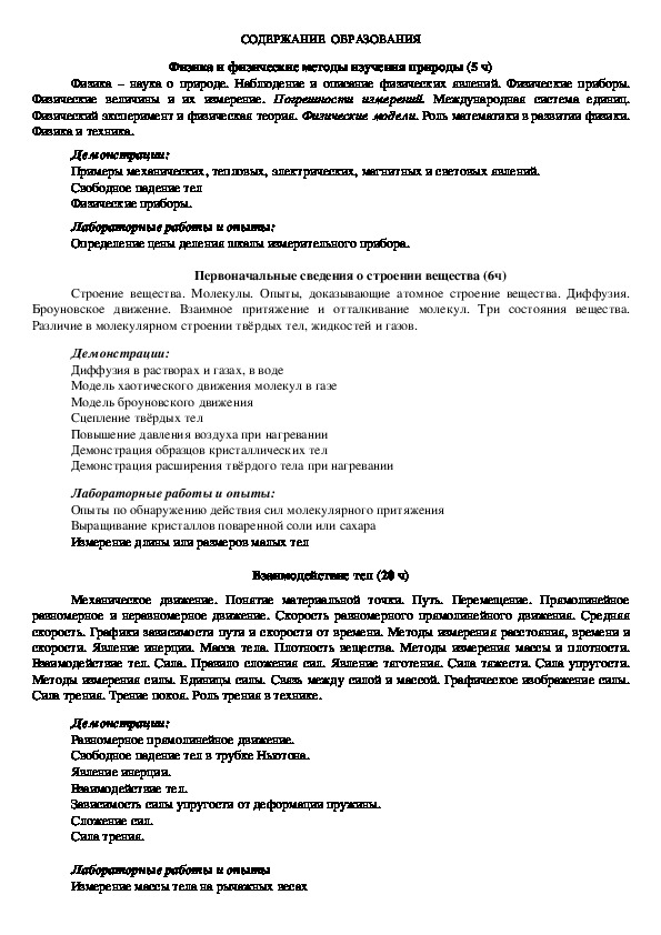 Курс физики в примерной программе основного общего образования структурируется на основе