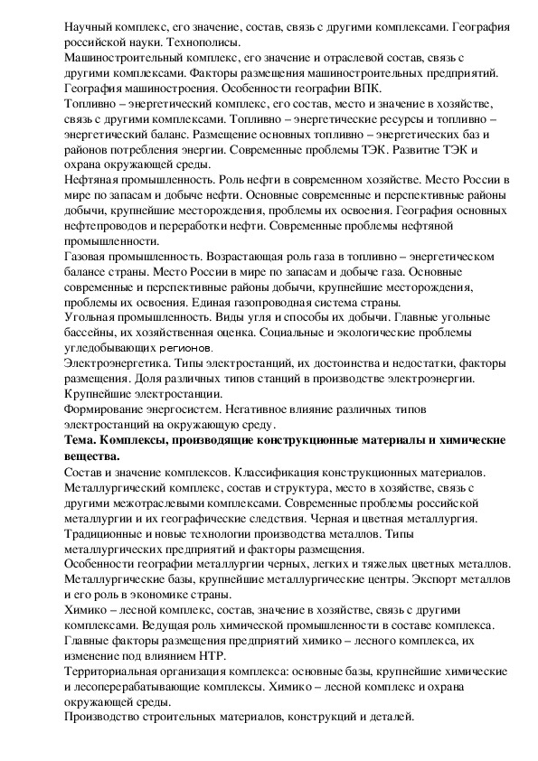 Важнейшие межотраслевые комплексы России и их география (1 ч)