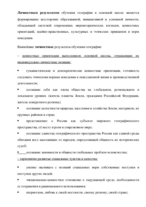 Планируемые результаты обучения географии.Личностным результатом обучения географии в основной школе является