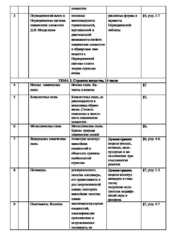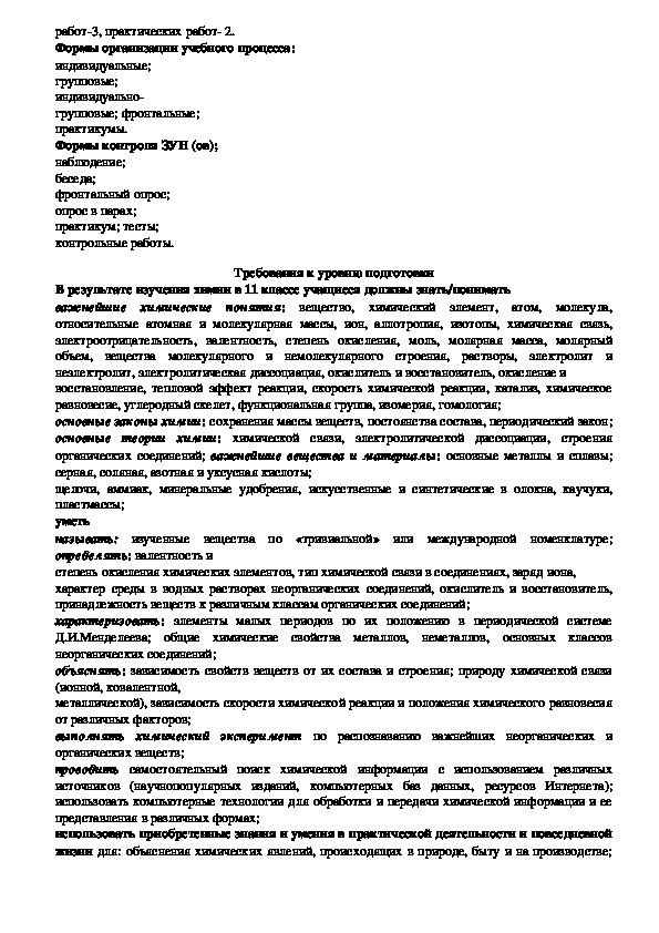 В результате изучения химии в 11 классе учащиеся должны знать/понимать