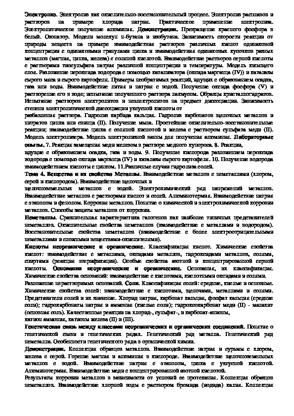 органических соединений; важнейшие вещества и материалы: основные металлы и сплавы;