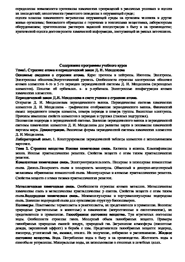 мира. Ведущая идея курса – единство неорганической и органической химии на основе общности