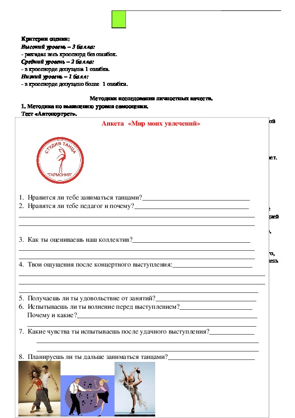 танцевальной музыки развивает и внутренне обогащает, прививает умение через танец выражать
