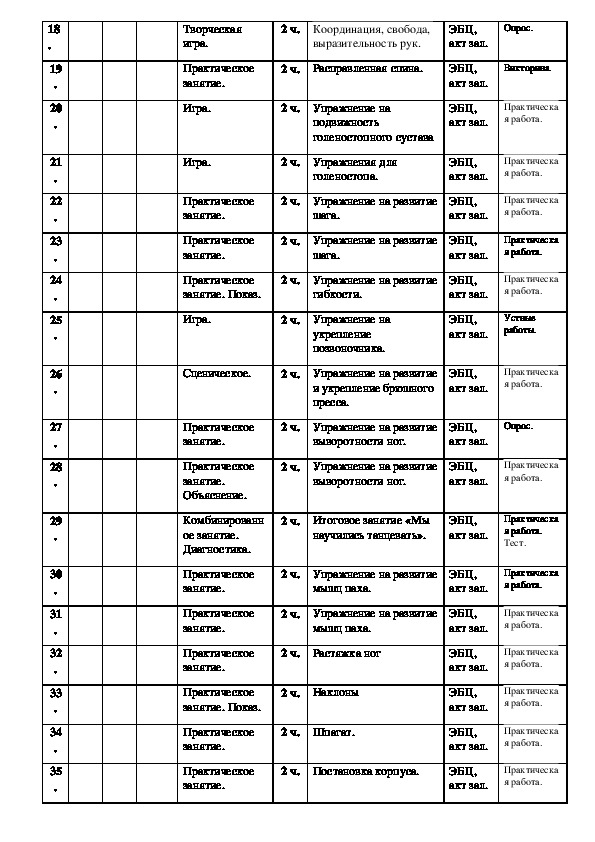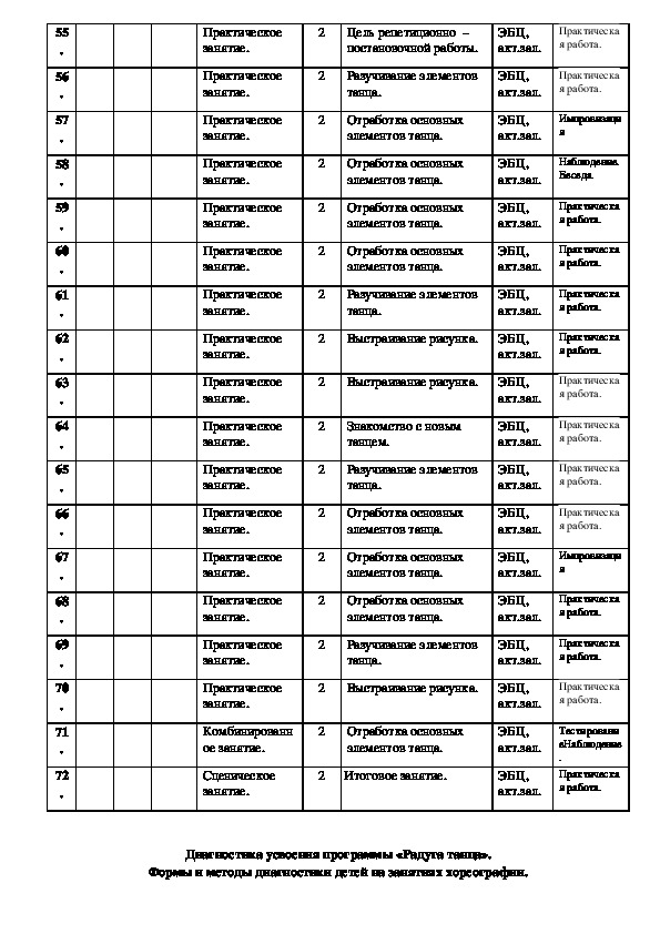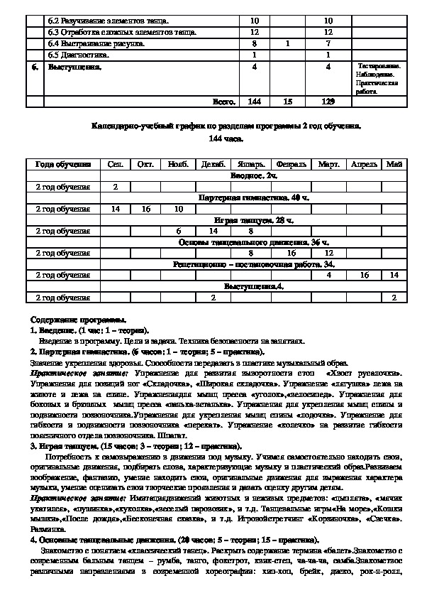 Программа «Радуга танца» рассчитана на 2 года для детей 4 – 7 лет, всего 72 часа в год, и на 2