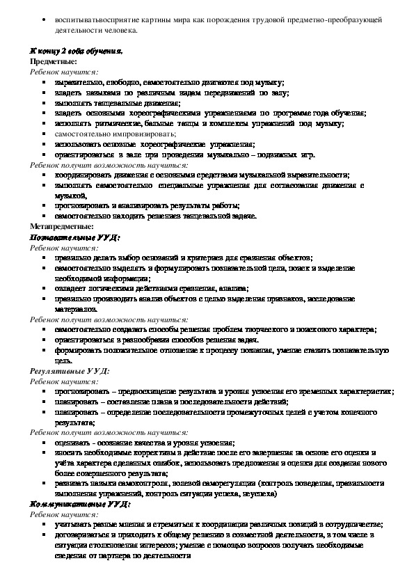 возраста «Прекрасный мир танца» О.Н. Калининой.