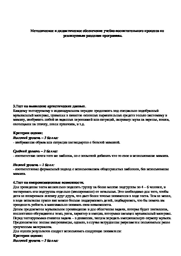 интегрированном обучении ритмике, хореографии, музыке, пластике, сценическому движению, их