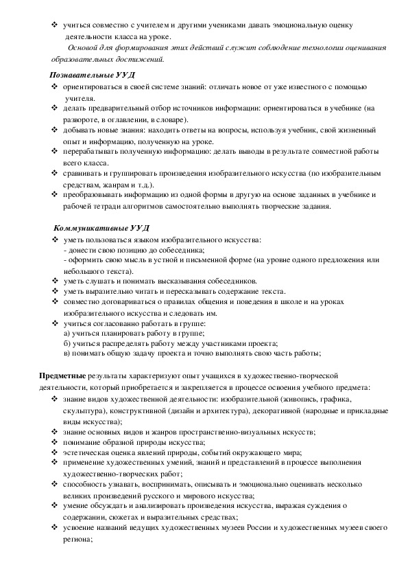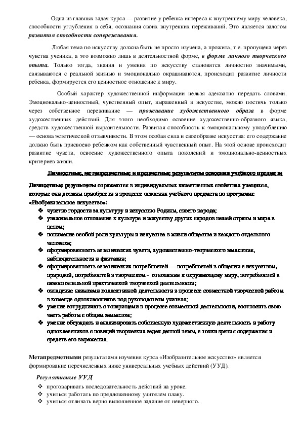 развитие личности учащихся средствами искусства, получение эмоциональноценностного