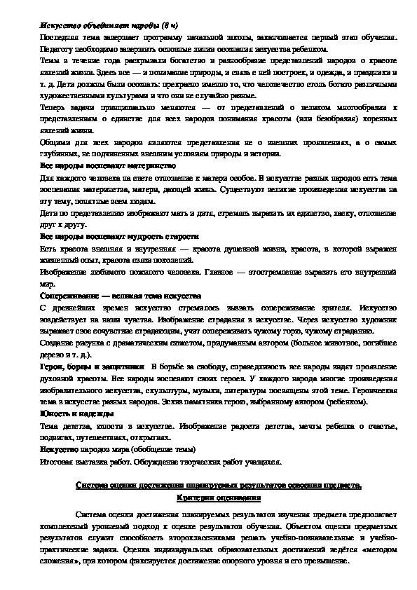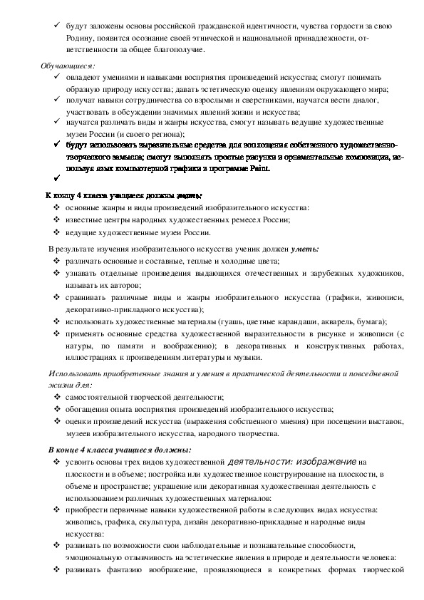 Рабочая программа по изобразительному искусству для 4 класса разработана на основе