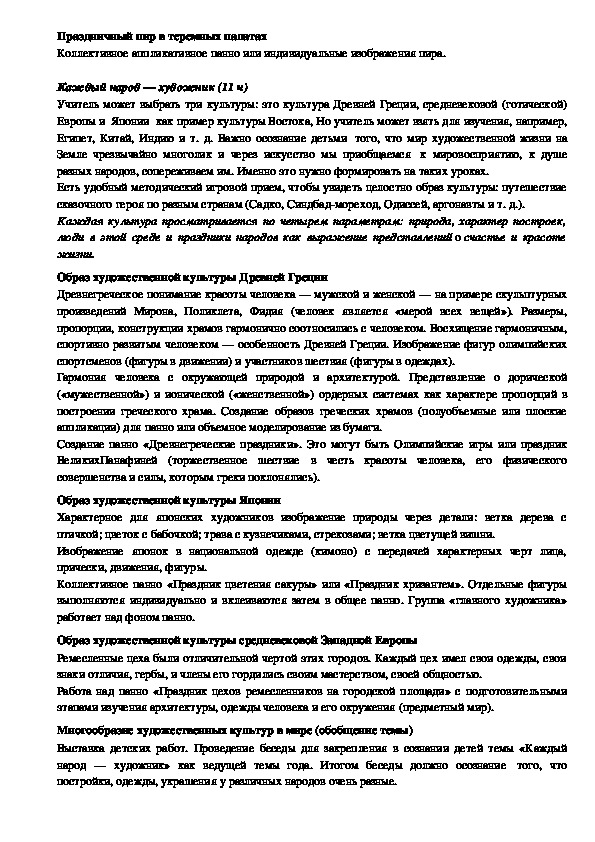 деятельности, формирование представления о многообразии культур народов Земли и о