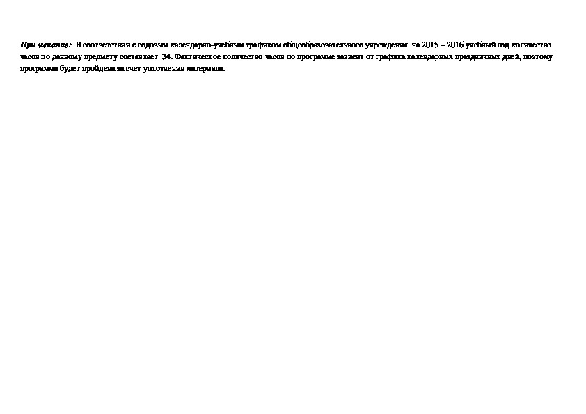 часов по данному предмету составляет 34. Фактическое количество часов по программе зависит от графика календарных праздничных дней, поэтому