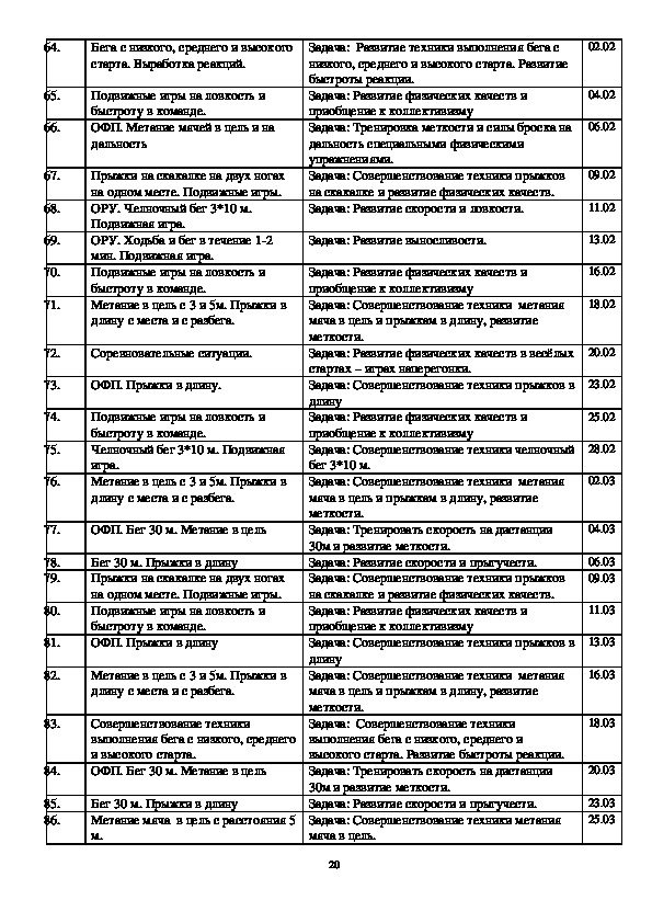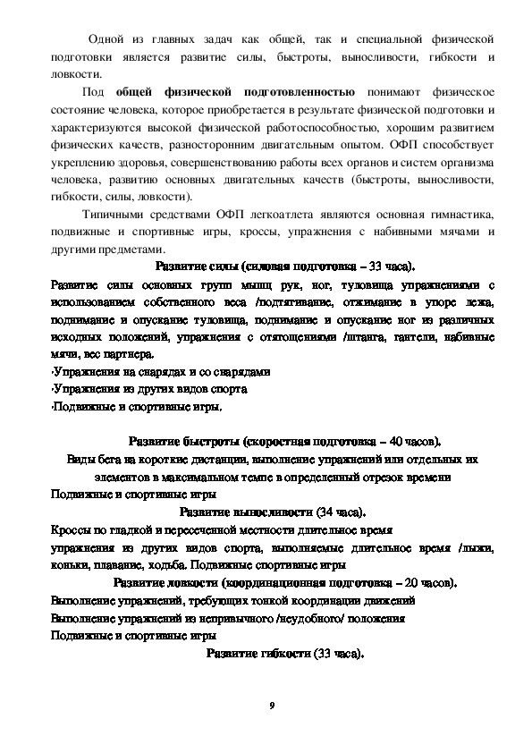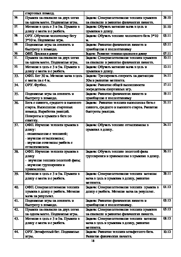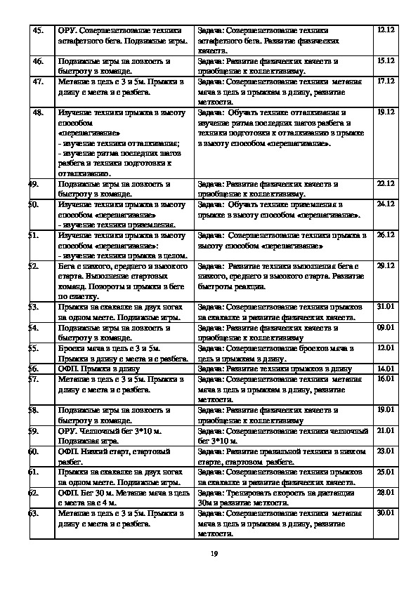 дистанции, спортивная ходьба) Примерная программа спортивной