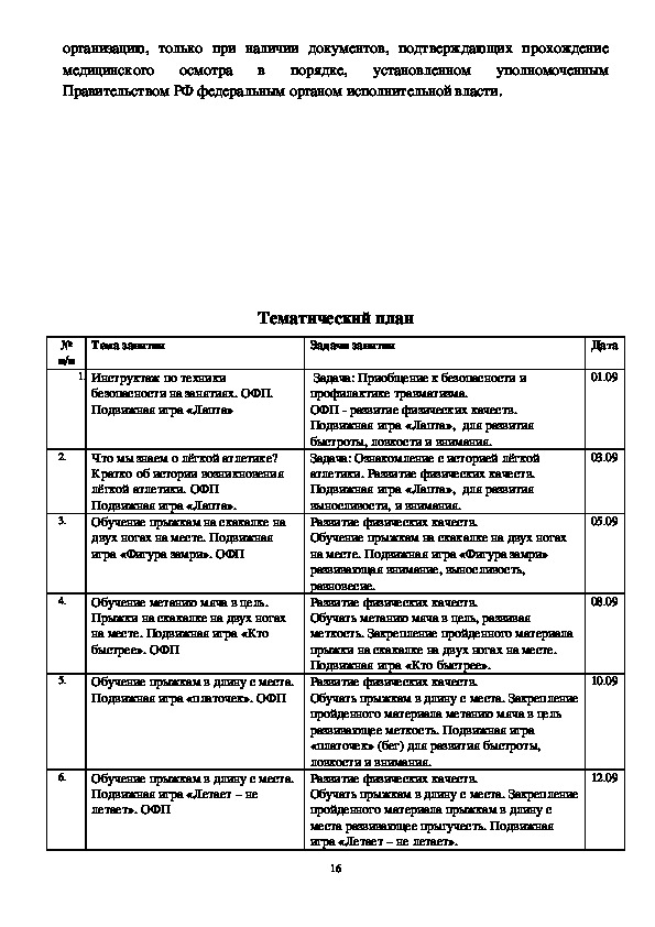 безопасности на занятиях лёгкой атлетики.