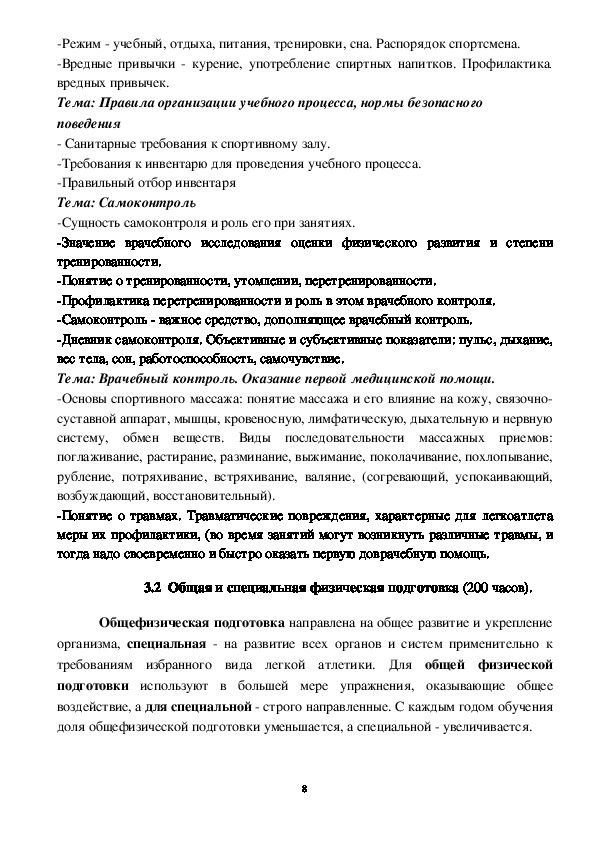 3.2 Общая и специальная физическая подготовка……………………….8
