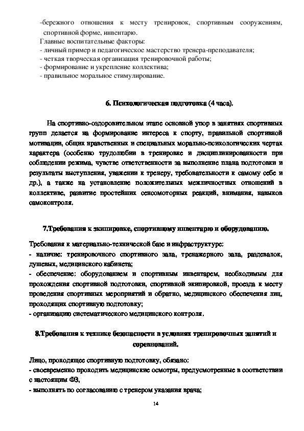 8. Требования к технике безопасности в условиях тренировочных занятий и