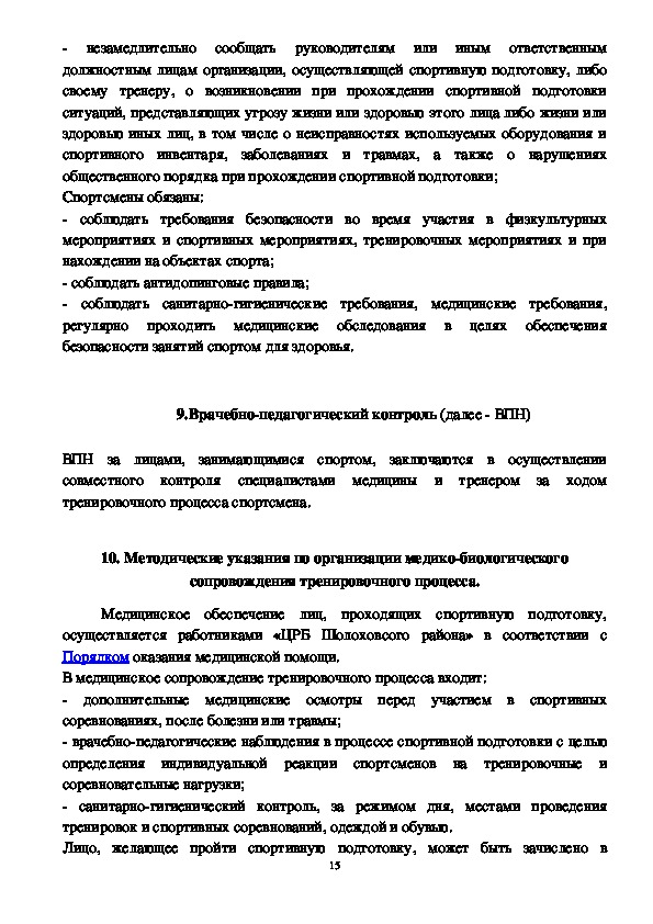 9. Врачебнопедагогический контроль (далее ВПН)…………………….15