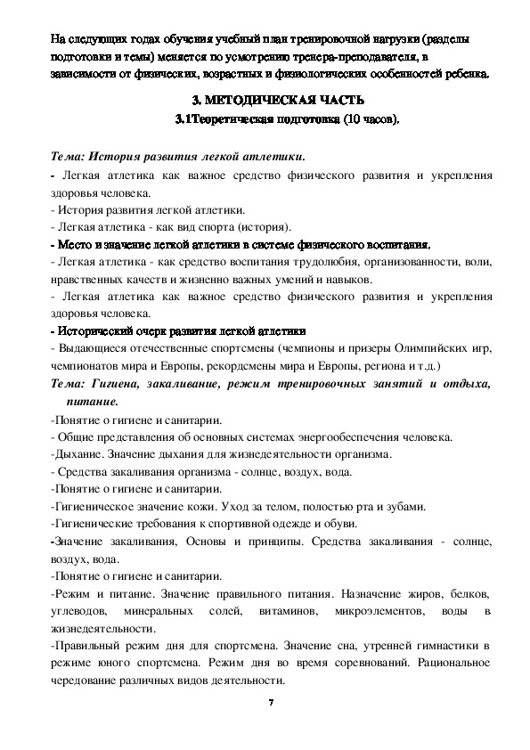3.1 Теоретическая подготовка…………………………………………….7