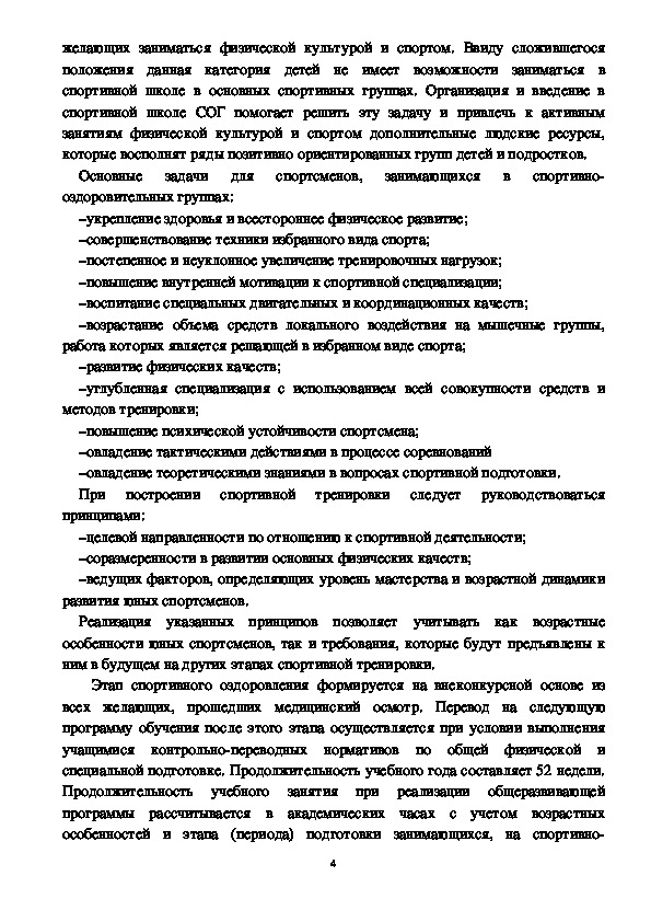 программа спортивной подготовки для ДЮСШ, СДЮШОР «Советский