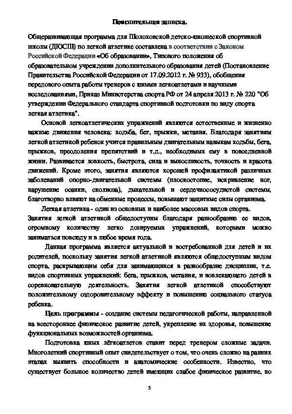 школы (ДЮСШ) по легкой атлетике составлена в соответствии с Законом