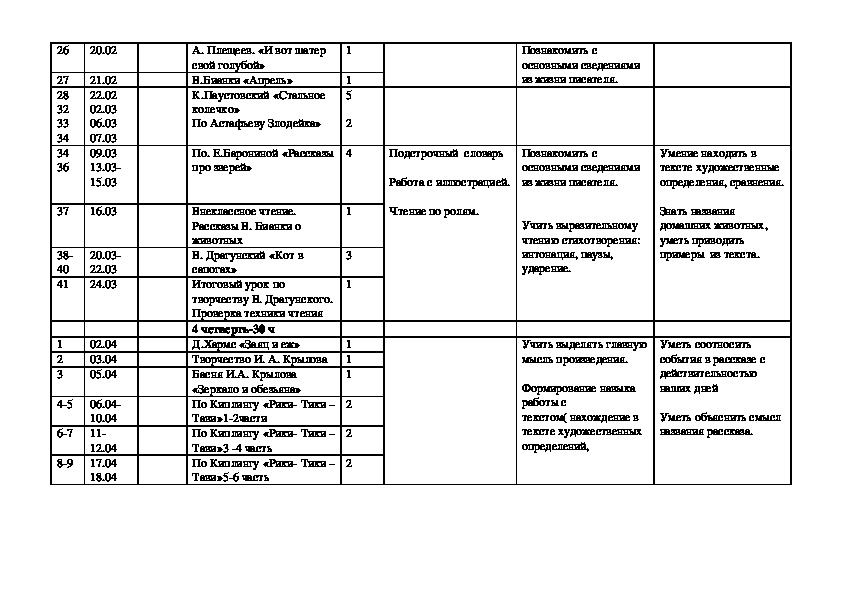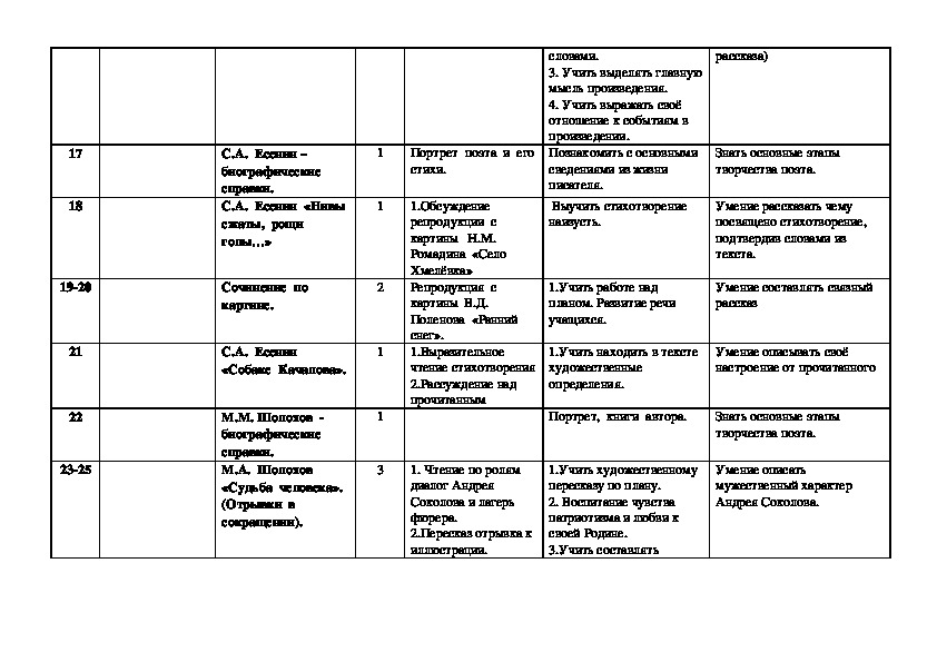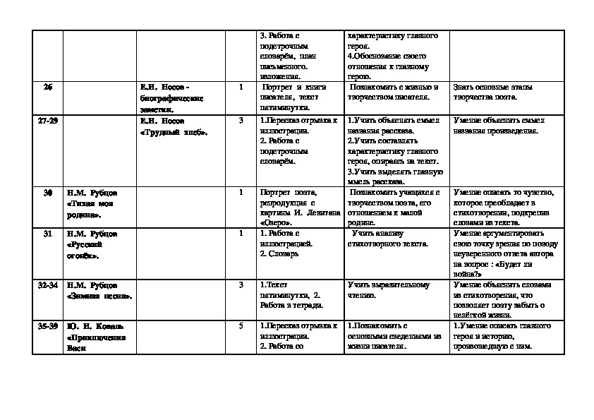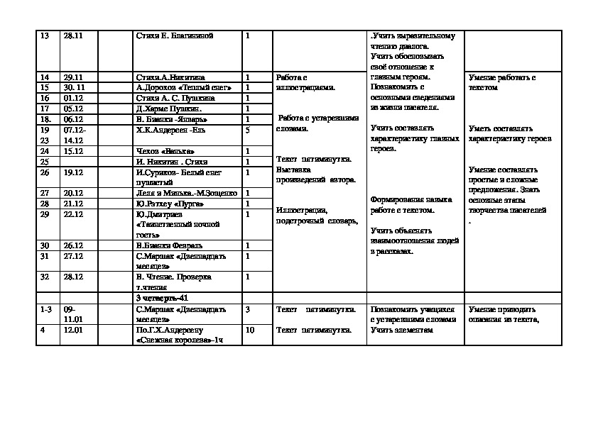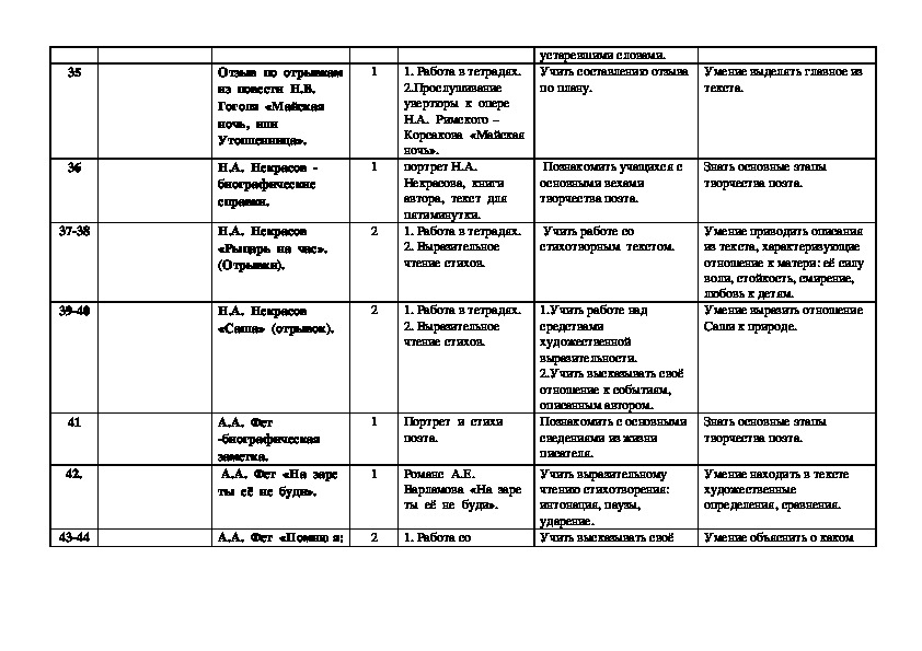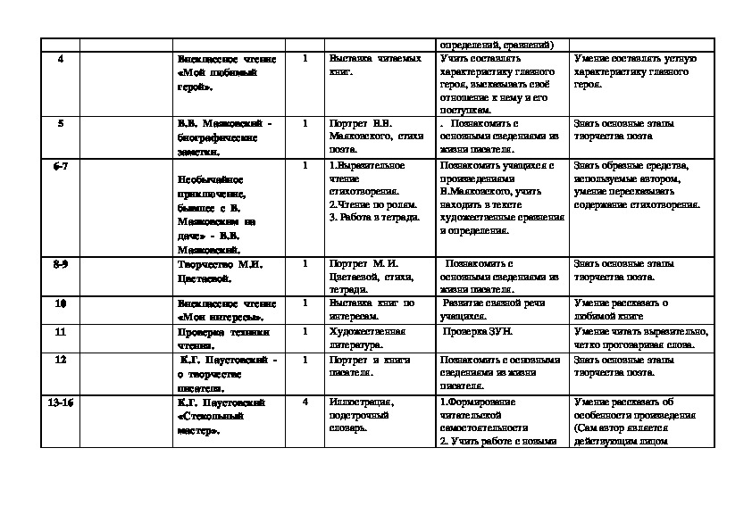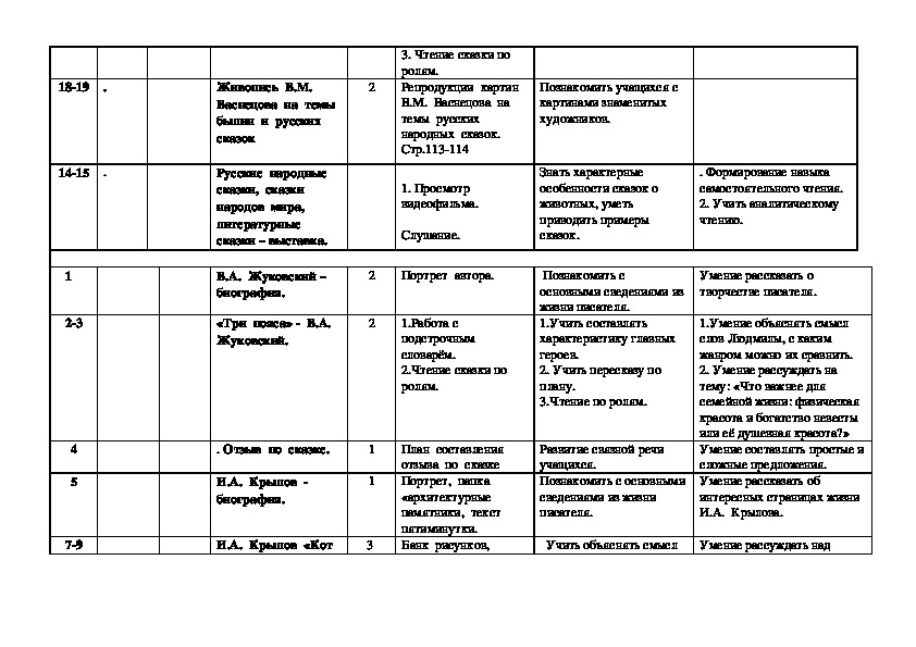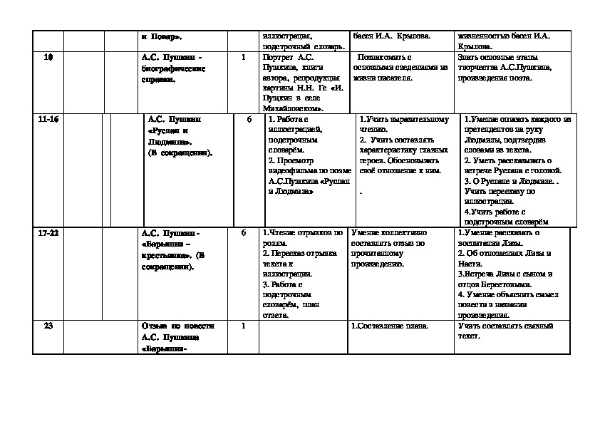 произведений, формирование эстетического отношения к искусству слова; овладение первоначальными навыками работы с учебными и