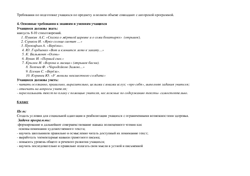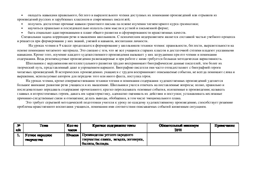 Чтение понимается как осознанный самостоятельный процесс чтения доступных по объему и жанру произведений, осмысление цели чтения