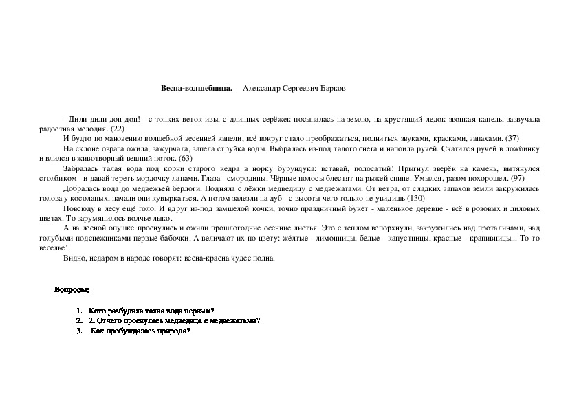 Материалы для промежуточной аттестацииВеснаволшебница. Александр Сергеевич Барков