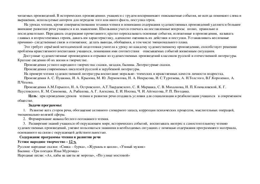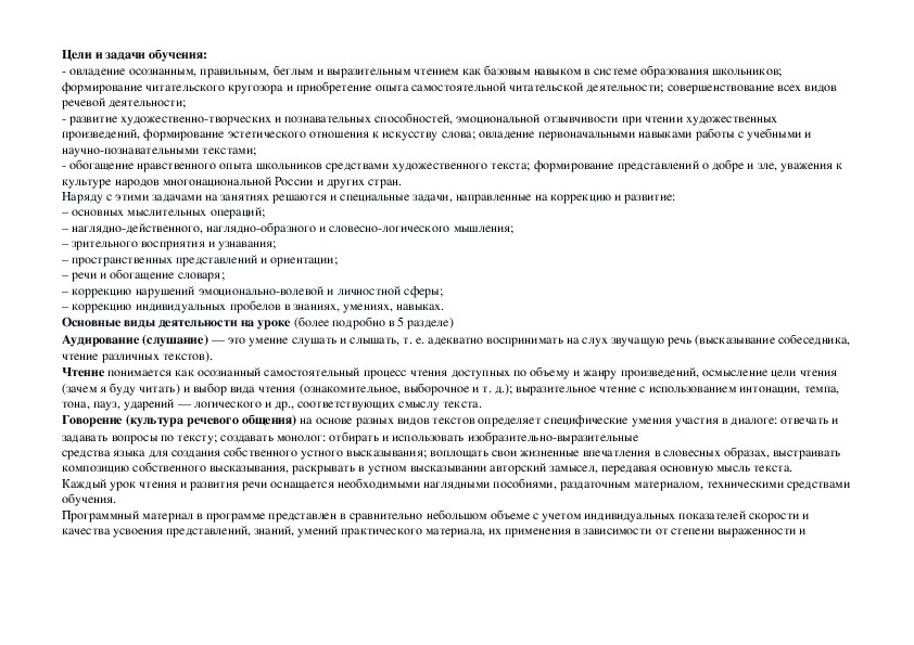 Процесс обучения чтению и развитию речи неразрывно связан с решением специфической задачи специальных (коррекционных)