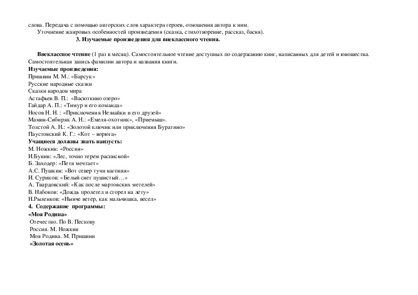 содержания. Ведь рекомендуемые произведения разножанровые и при работе с ним требуется большая методическая вариативность.