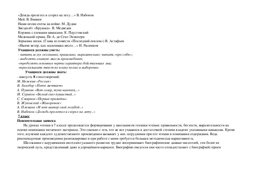 Умственно отсталые школьники трудно воспринимают биографические данные писателей, тем более их творческий путь, представленный