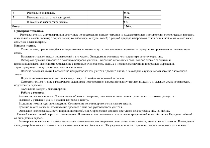 Обучение чтению и развитию речи носит практическую направленность и тесно связано с другими учебными предметами, жизнью, является