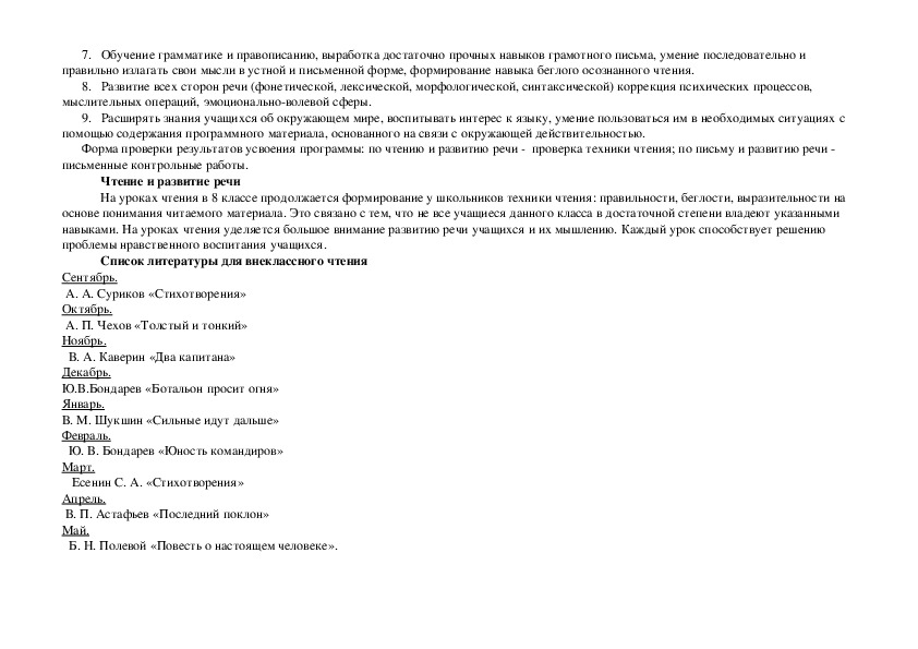 «Чтение, 8 класс, автор составитель З.Ф.Малышева.М.:Просвещение,2006