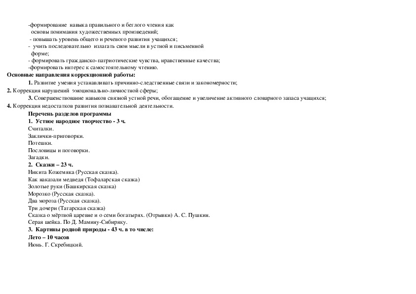 Задачи программы:формирование навыка правильного и беглого чтения как