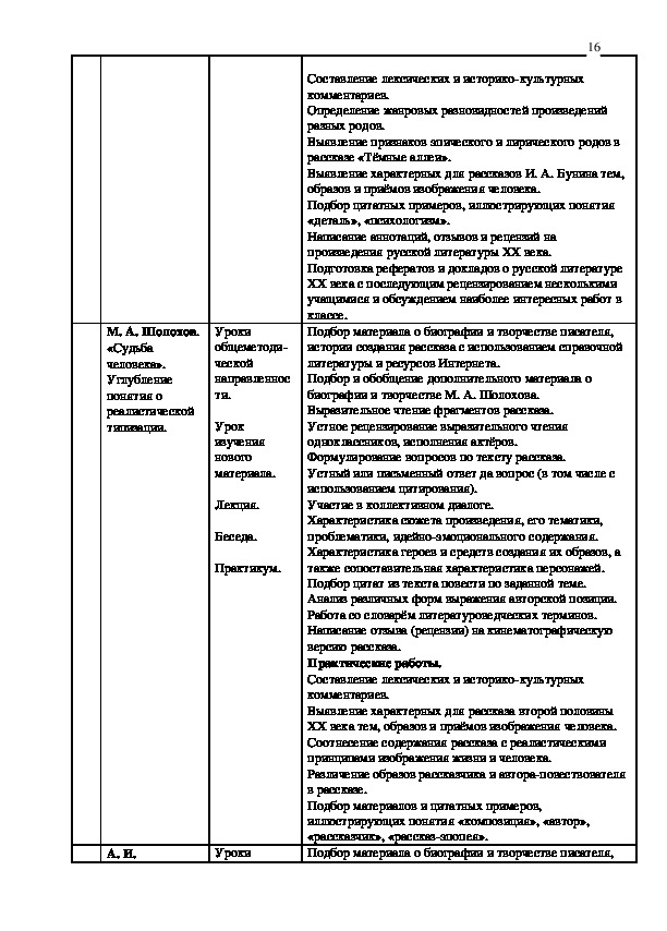 соответствующие изменения по изучению разделов литературы, предполагающие учитывать