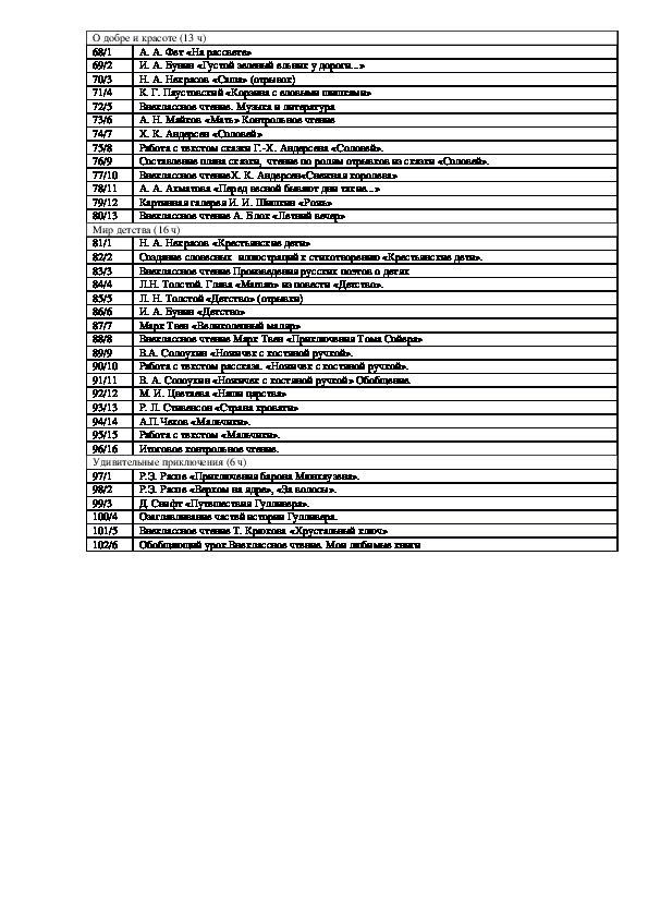 программе в 4 классе отводится 102 часа за учебный год (3 часа в неделю). Рабочая программа предполагает