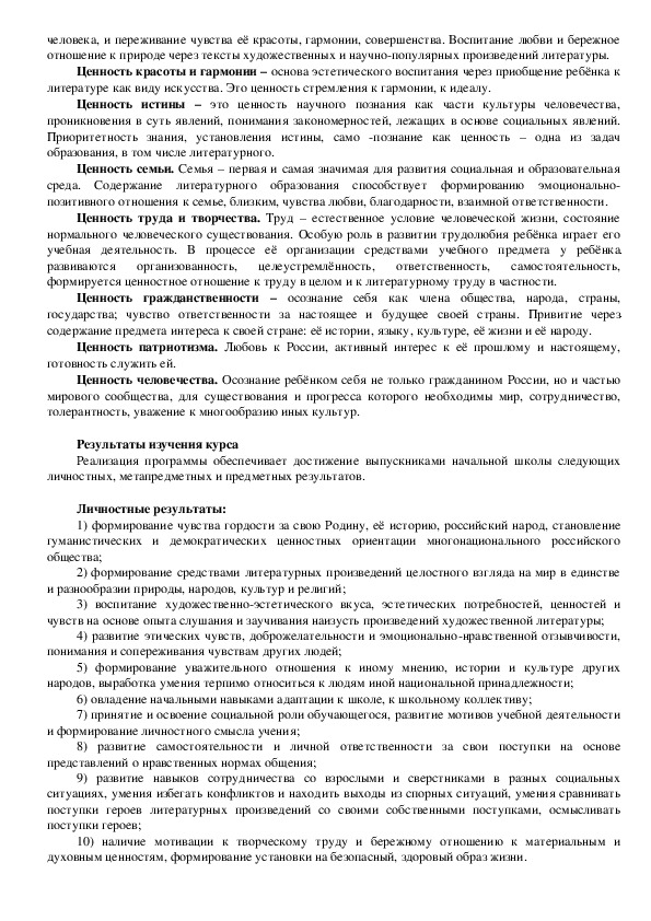 Таким образом, курс литературного чтения нацелен на решение следующих основных задач: