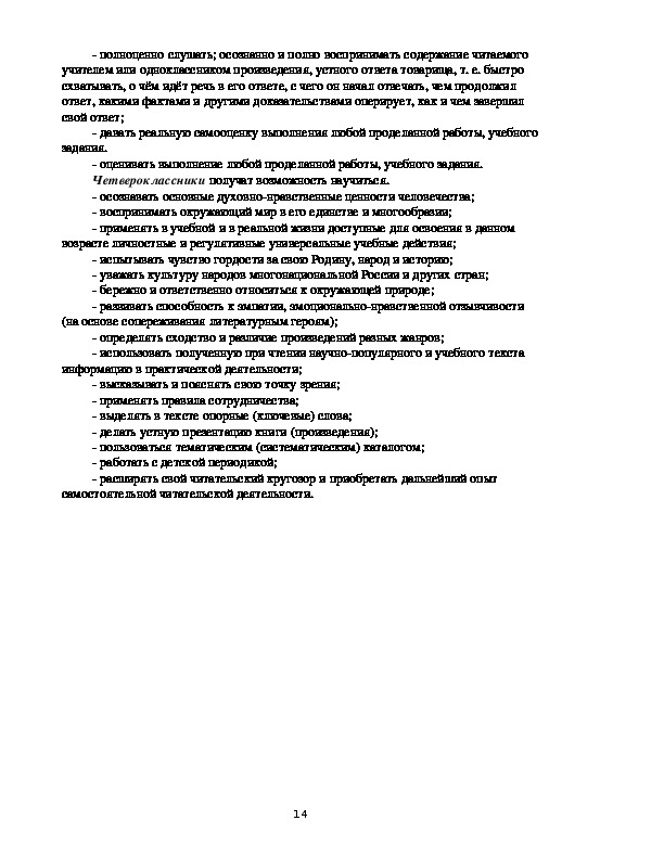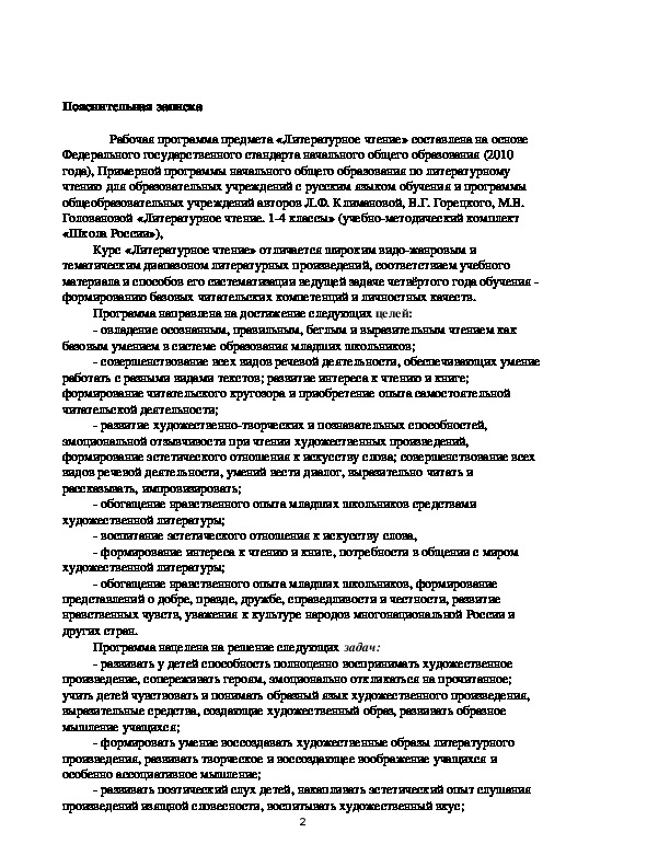 Рабочая программа предмета «Литературное чтение» составлена на основе