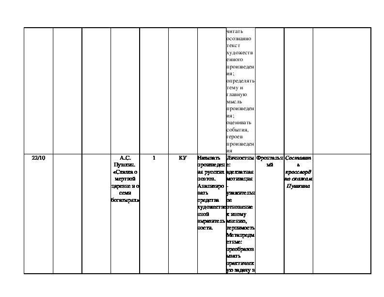 произведения, развивать творческое и воссоздающее воображение учащихся и