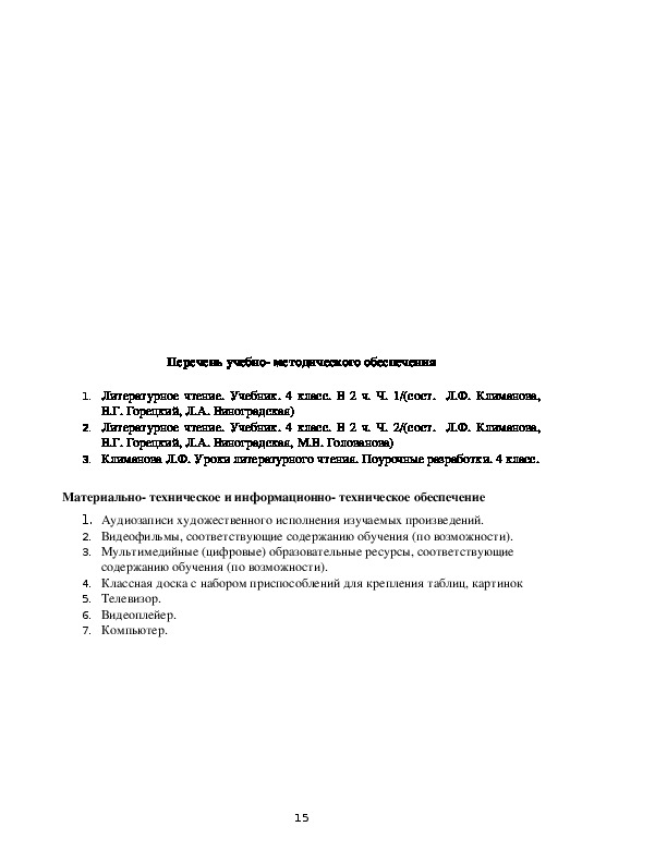 Климанова Л.Ф., Горецкий В.Г., М.В. Голованова М.В. и др. Литературное