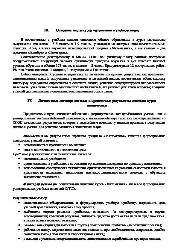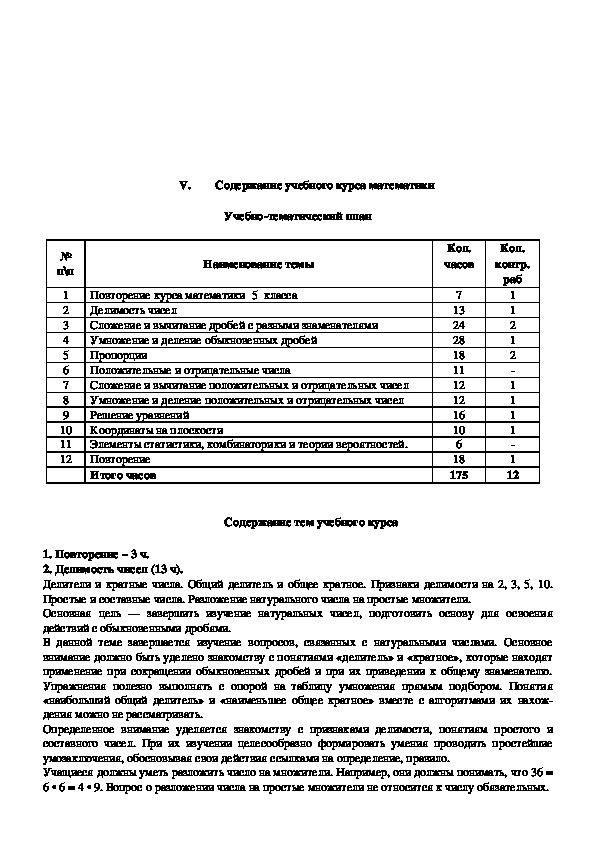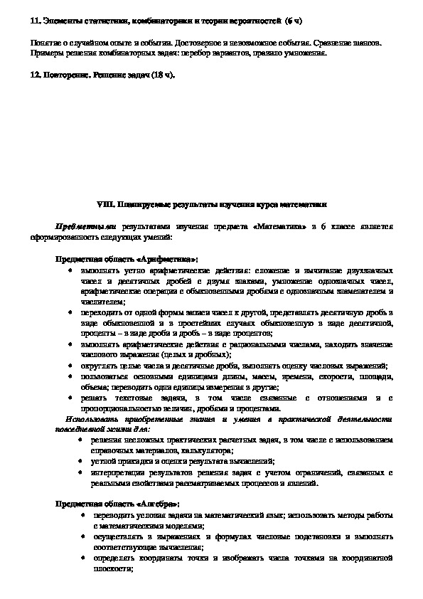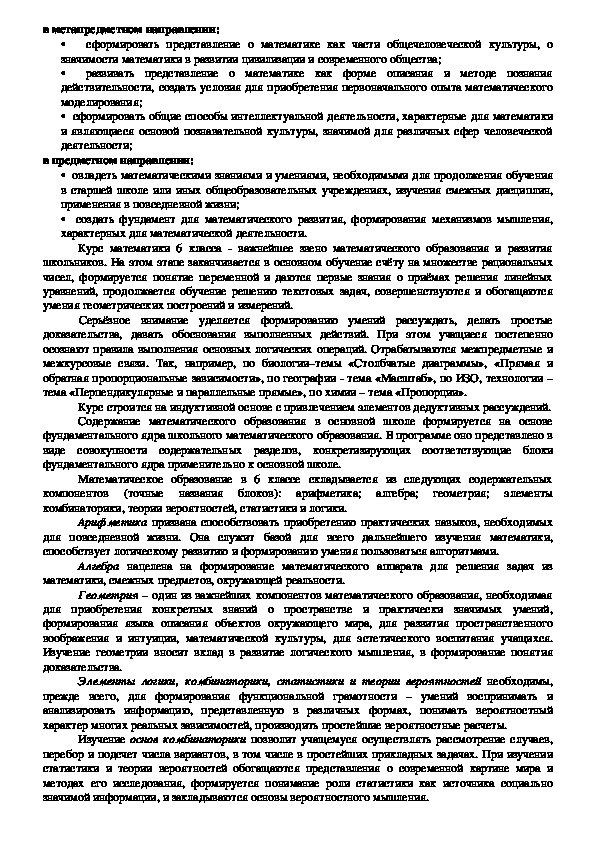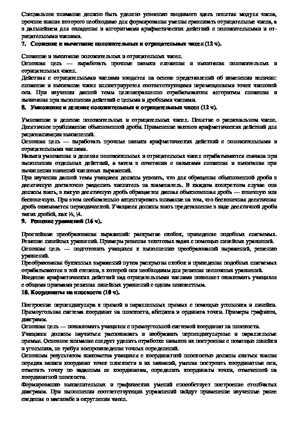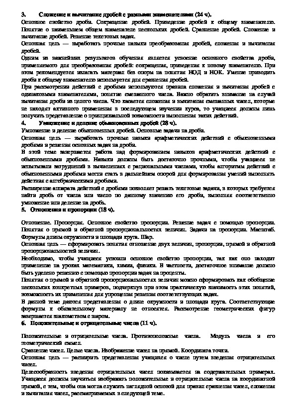 Данная программа является рабочей программой по предмету «Математика» в 6