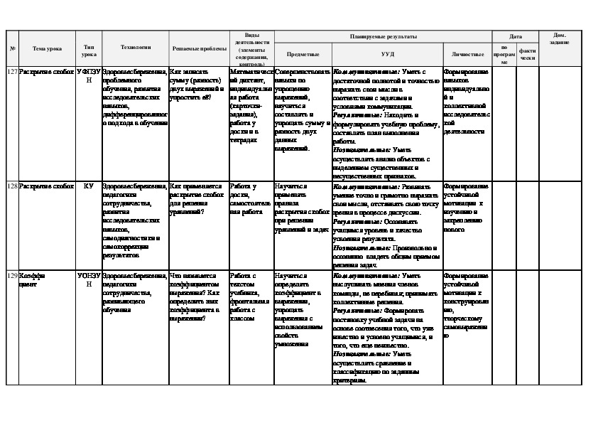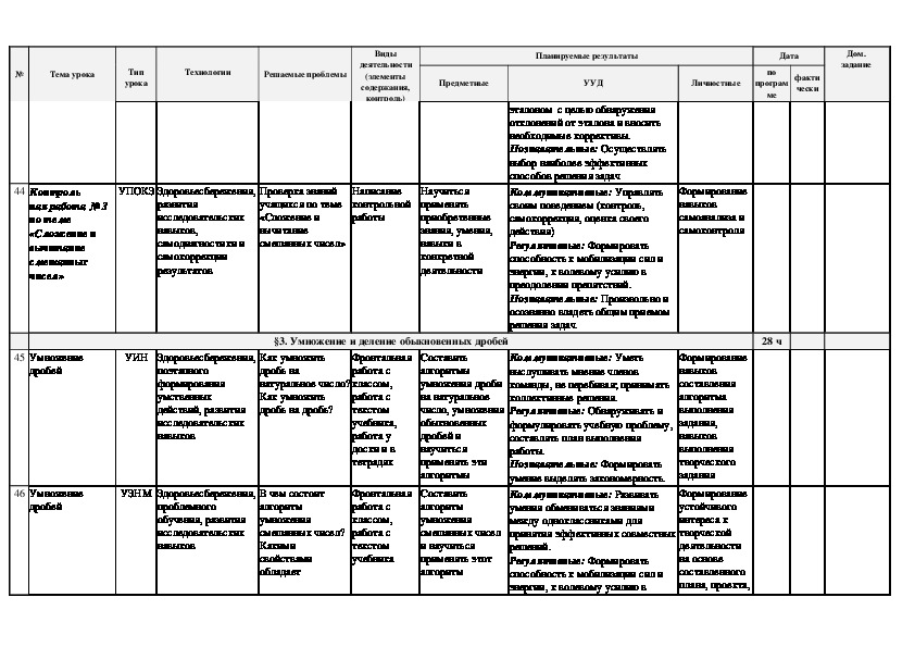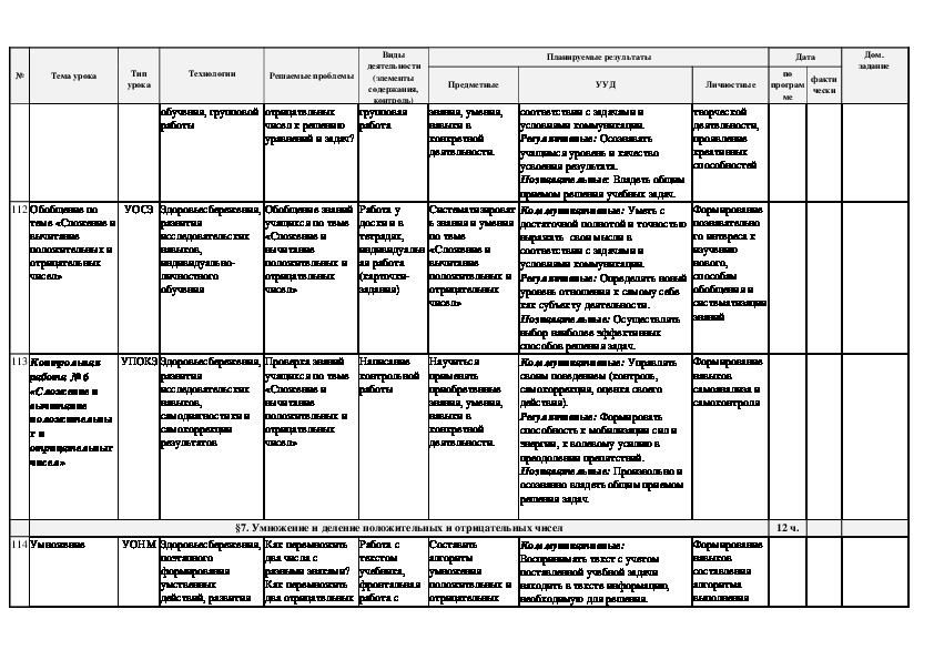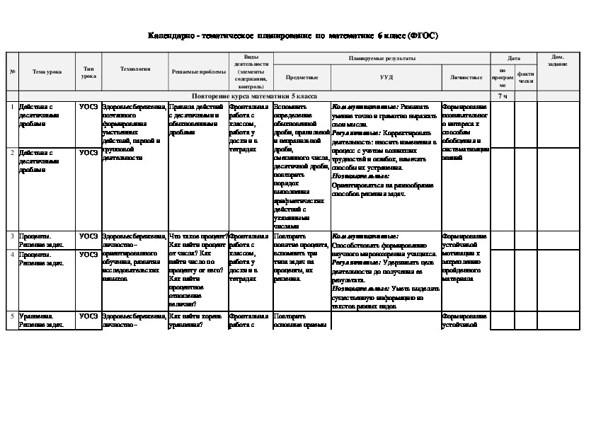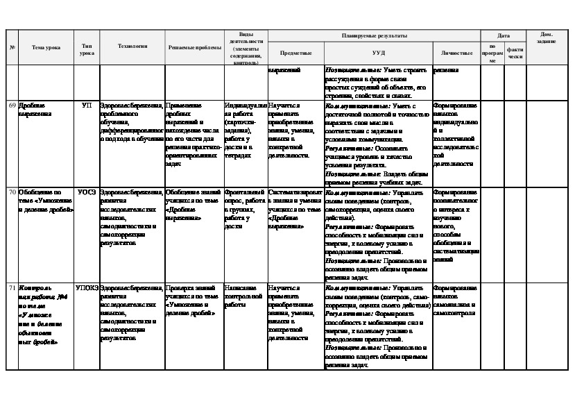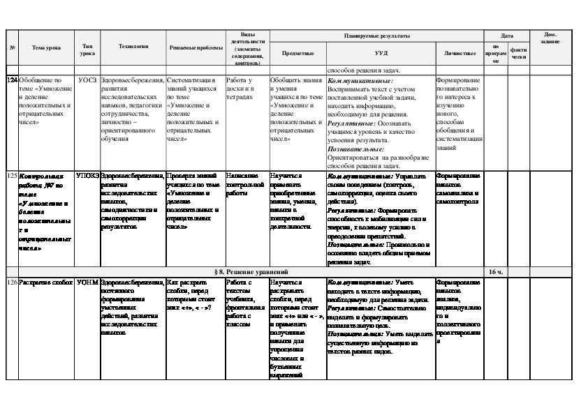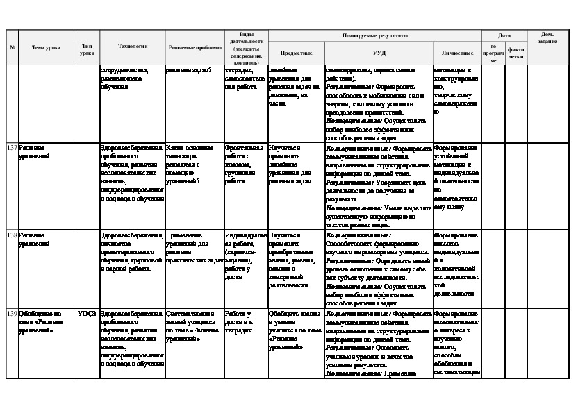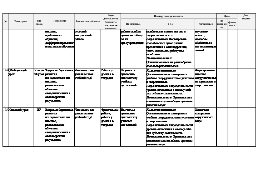 изучения каждой темы предусмотрено проведение уроков повторения и обобщения. На уроках