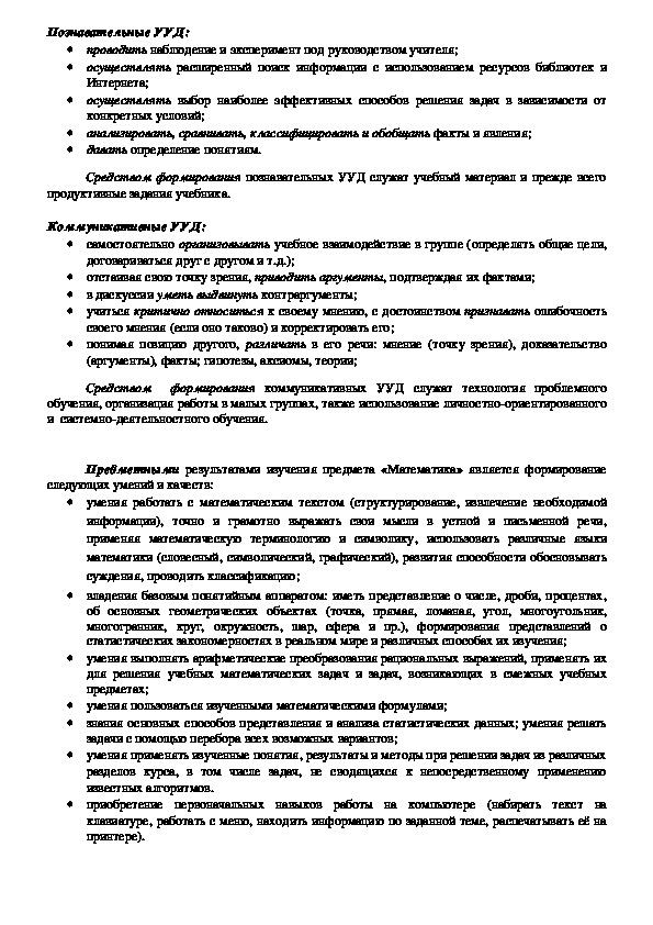 рассуждений. Изучая математику, они усваивают определённые обобщённые знания и способы