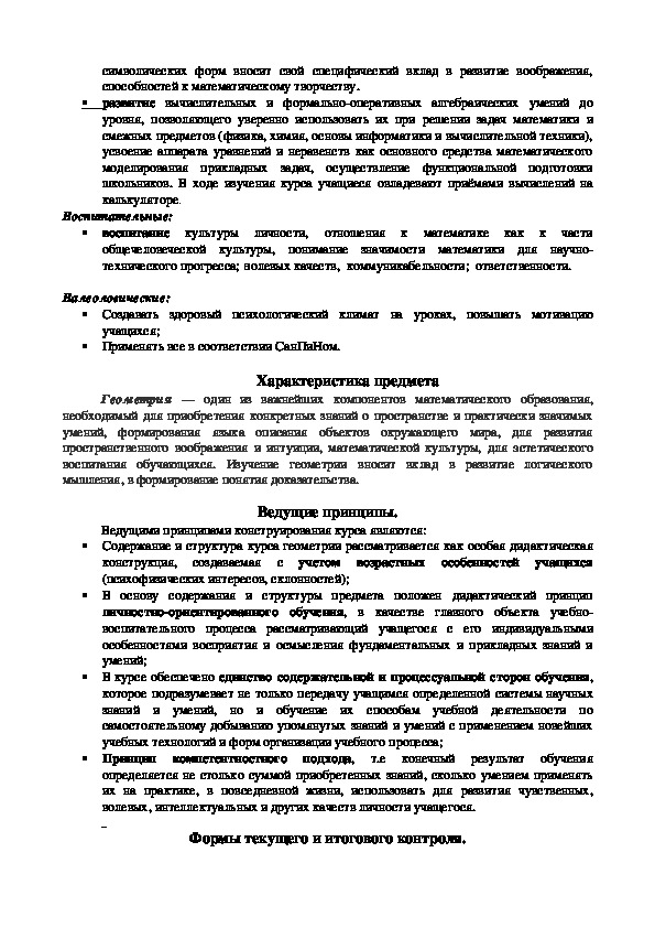 Рабочая программа по геометрии разработана на основе следующих документов: