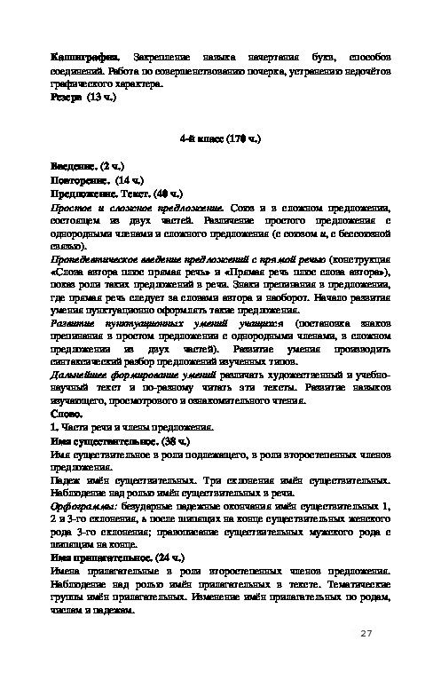 изучения курса русского языка.